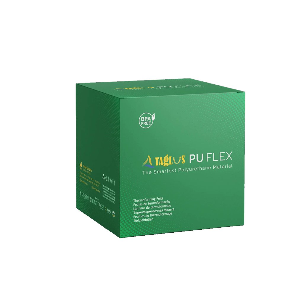 Taglus® PU Flex is a homogeneous polyurethane sheet that consists of linear polymeric chains made of alternating flexible and rigid segments. It is a high-performance aligner and retainer material that provides excellent flexibility, strength, and durability, while also providing comfort for the wearer.